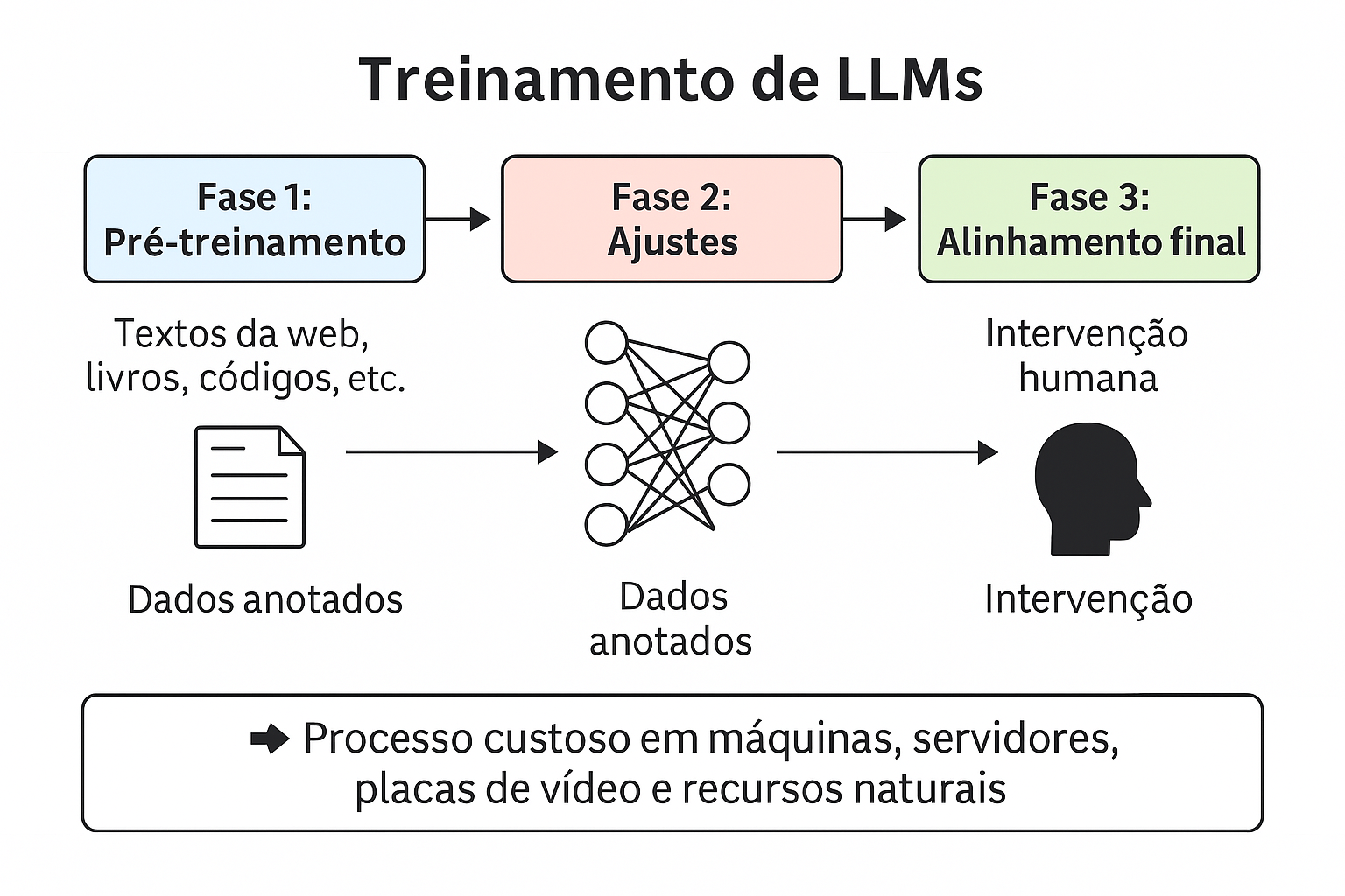 Exemplos: GPT-4, Claude, Gemini, LLaMA