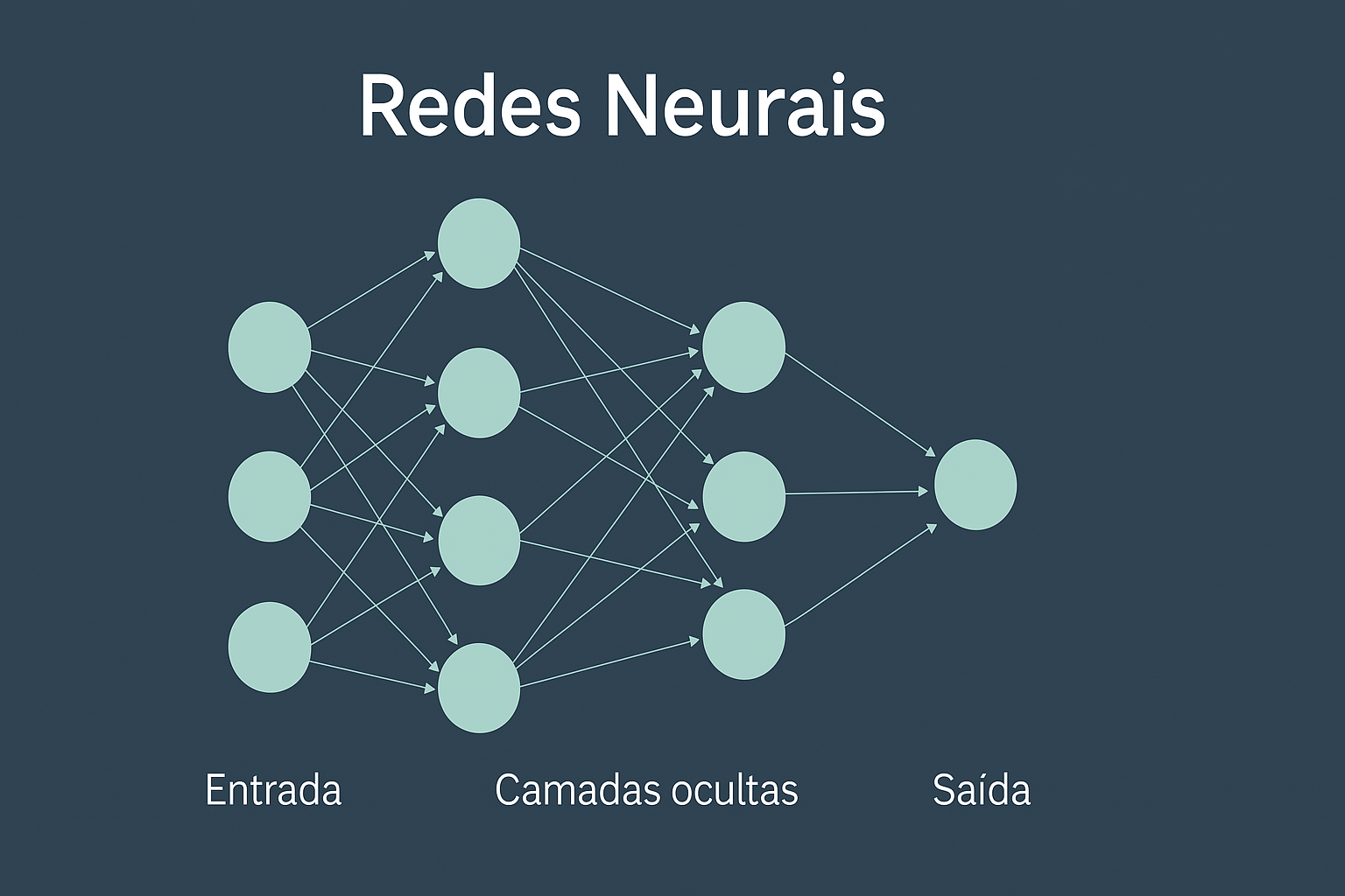 Esquema de rede neural: Cada nó aprende a reconhecer padrões e contribui para a geração de uma resposta final.