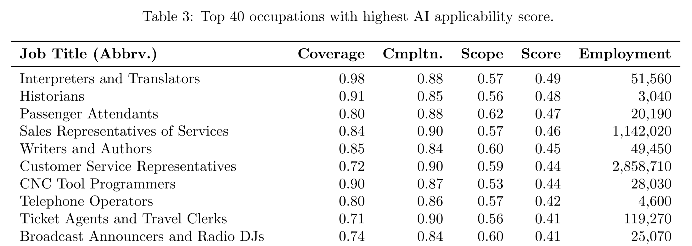 TOMLINSON, Kiran; JAFFE, Sonia; WANG, Will; COUNTS, Scott; SURI, Siddharth. Working with AI: Measuring the Occupational Implications of Generative AI. Pre-print. 2025. Disponível em: https://arxiv.org/abs/2507.07935. Acesso em: 12 ago. 2025.